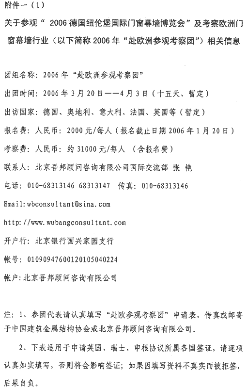 關于邀請參加“2006德國紐倫堡國際門窗幕墻博覽會”及考察歐洲門窗幕墻行業的通知