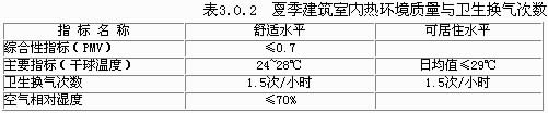 3.0.2 夏季建筑室內熱環境質量指標與衛生換氣次數應符合表3.0.2。