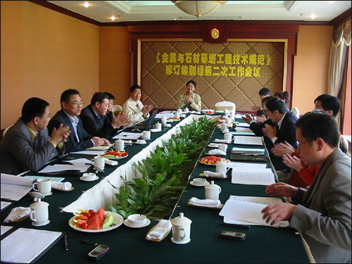 2005年4月13日—4月15日《金屬與石材幕墻工程技術規范》JGJ133修訂編制組在杭州蕭山召開了第二次全體人員會議,會議的主要議題是對內部討論稿進行逐條研討,經過編制組專家的認真詳盡的討論,會后形成了本規范的征求意見稿,為《金屬與石材幕墻工程技術規范》JGJ133的最終修訂又向前邁進了一大步。