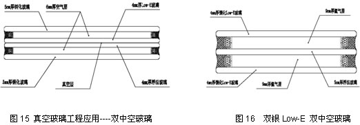 中空玻璃的工藝,將真空玻璃放在雙中空的中間,由與室內外空氣接觸的兩片玻璃采用