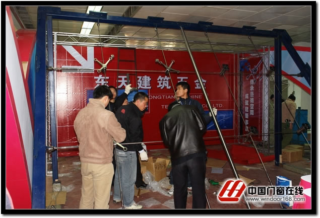 2006中國(北京)國際門窗幕墻博覽會吸引了眾多行業知名企業前來參展.來自全國各地行業企業工作人員,正在緊張的布置展臺,迎接展會開幕。