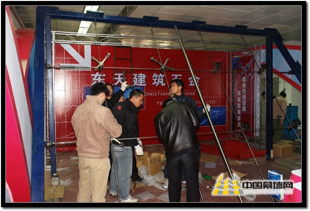 2006中國(北京)國際門窗幕墻博覽會吸引了眾多行業知名企業前來參展.來自全國各地行業企業工作人員,正在緊張的布置展臺,迎接展會開幕。