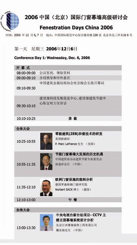 2006年中國(北京)國際門窗幕墻高級研討會在于2006年12月6日、7日在中國國際展覽中心綜合服務樓226室召開。