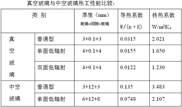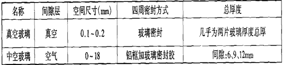 2)真空玻璃與中空玻璃結構和性能比較: