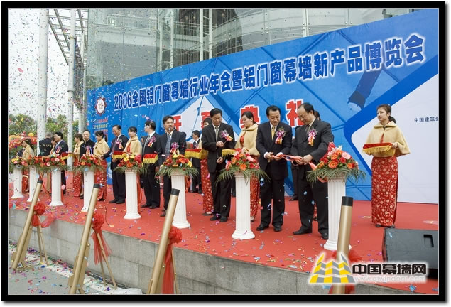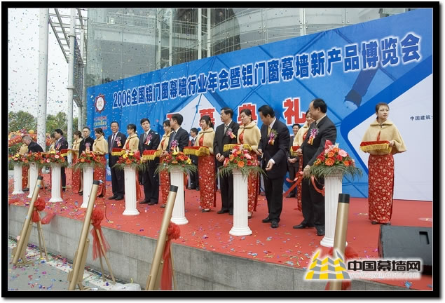 開幕式剪彩儀式完成,2006年全國鋁門窗幕墻行業年會正式開始