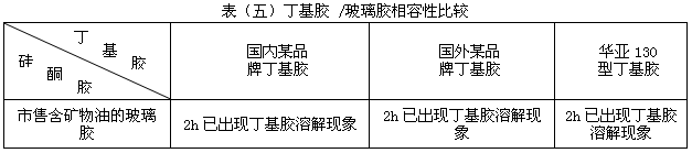 可見,采用含礦物油的玻璃膠與國、內外丁基膠直接相接觸,在極短的時間內(小于2h)均出現了丁基膠溶解現象。