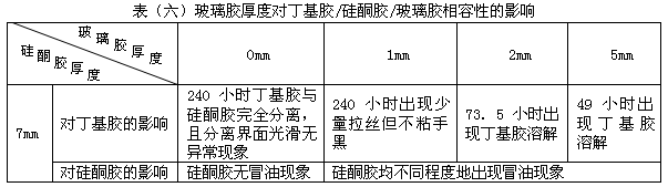 ① 玻璃膠厚度對丁基膠/硅酮膠/玻璃膠相容性的影響