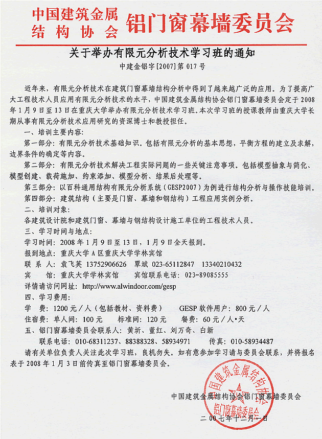 關于舉辦有限元分析技術學習班的通知