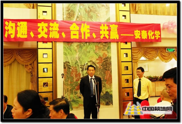 鋁門窗幕墻委員會主任黃圻先生,對安泰化學近年來在建筑幕墻膠領域所取得的發展表示祝賀,同時希望安泰化學發揮技術優勢,向行業品牌化方向拓展。