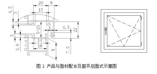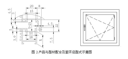 2.2 產(chǎn)品與型材配合及窗開啟型式示意圖