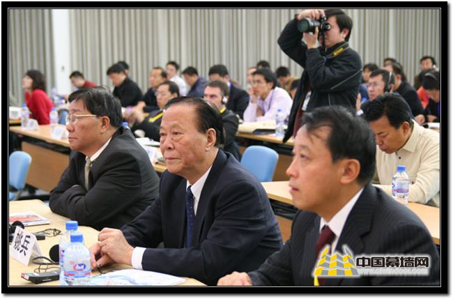 原建設(shè)部總工程師、博士生導(dǎo)師姚兵先生 中國建筑金屬結(jié)構(gòu)協(xié)會會長杜宗翰先生 中國建筑金屬結(jié)構(gòu)協(xié)會副秘書長鋁門窗幕墻委員會主任黃圻先生 在研討會現(xiàn)場