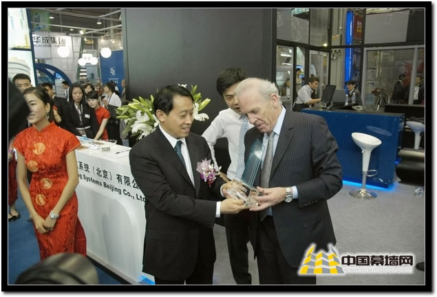 中國建筑金屬結構協會副秘書長鋁門窗幕墻委員會主任 黃圻與外國友人交流