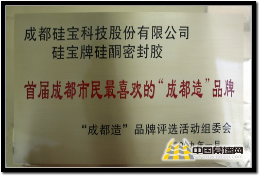 近日,成都硅寶參加了首屆成都市民最喜歡的成都造品牌評選活動,從700多家企業中脫穎而出,入選前20。2009年1月16日,首屆成都市民最喜歡的成都造品牌授牌儀式在成都日報報業集團大廈舉行,市委宣傳部副部長羅波,市經委黨組書記、主任何禮,市工商局副局長熊超,市中小企業局局長李忠仆等領導為硅寶公司頒發了獎牌。