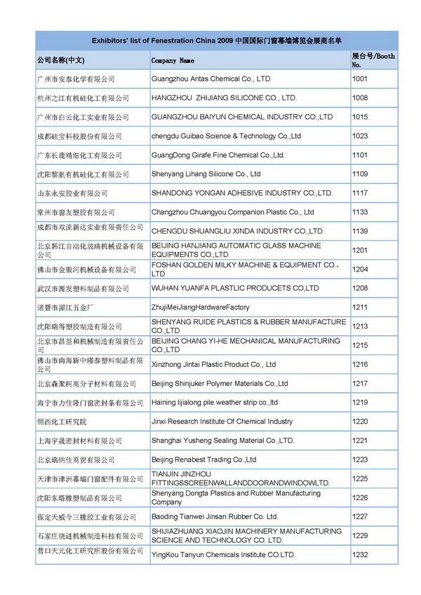 2009中國(北京)國際門窗幕墻博覽會展商名單新鮮出爐