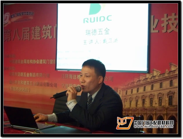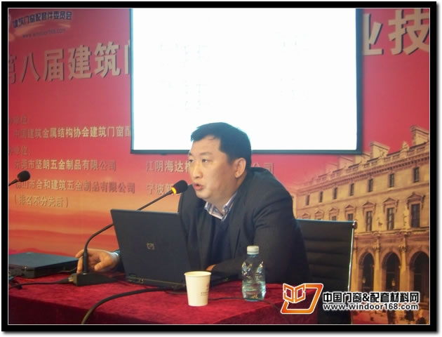 北京現代住邦建筑材料有限公司 賈天明 做了名為《關于現代執行器幾技術在門窗五金產品應用的討論》的講座