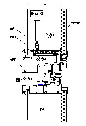如圖2所示,單元幕墻的插接部位也是室外空氣進入室內(nèi)的入口,空氣入口處設(shè)置了防鳥、防蟲、過濾空氣的不銹鋼絲網(wǎng)。可以防止飛鳥和小蟲進入玻璃后腔,同時吸附空氣中的灰塵,防止灰塵污染玻璃內(nèi)側(cè)面,破壞玻璃的裝飾效果。不銹鋼絲網(wǎng)隱藏于橫向裝飾罩板后,不影響外觀,且可很方便的拆換清洗和重新安裝。進風(fēng)口處設(shè)有進氣門,它在出風(fēng)口開關(guān)控制系統(tǒng)的作用下開關(guān)。內(nèi)襯板與型材的連接處設(shè)置柔性膠墊,連接后保證內(nèi)襯板與型材間的頭道周圈密封。在空氣流動的幕墻處的內(nèi)幕墻上留有專門的檢修、清洗門。