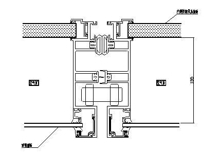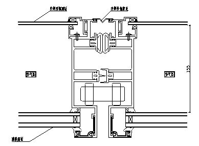 圖4為經(jīng)濟型雙層通風(fēng)幕墻的縱向主龍骨室內(nèi)采光部分左右兩板塊單元的拼接節(jié)點。