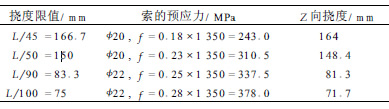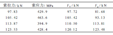 表2 各種不同控制撓度變形下索的拉力與應(yīng)力對照