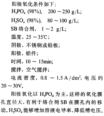 在磷酸一硫酸溶液中加人絡合劑sB,使鋁或鋁合金在陽極氧化過程中得到多孔性的微孔導電氧化膜,可在該膜上直接進行電鍍一但要求電鍍液為中性或弱酸性溶液,否則會破壞氧化膜;且溶液溫度不能高于70℃,以防氧化膜發生水化封閉。陽極氧化10 min以上,否則氧化膜過薄,失去鑲嵌作用;時間過長,氧化膜加厚,后續鍍層金屬充滿膜孔的時間延長,加長了電鍍時間一般以10 --15 min,膜厚3一5 μm為宜。本法成功地在1060 (L2)工業純鋁、6063鋁合金建筑型材上進行了800 mm x 400 mm x 400 mm槽液的光亮鍍銅,光亮鍍鎳,鎳上套鉻實驗。所得到的鍍層結合力好,光亮度高。