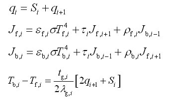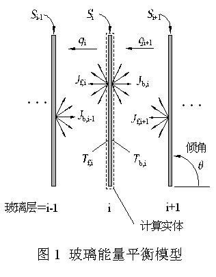 根據《熱工計算規程》,玻璃間氣體間層的能量平衡采用如下基本關系式表達: