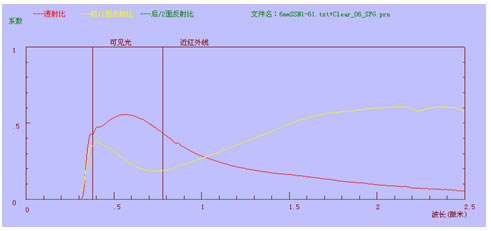根據玻璃光譜數據,采用Optics CC進行玻璃光學熱工計算,其結果如表2所示,玻璃系統結構及計算結果、玻璃系統光譜曲線分別如圖11、圖12所示。