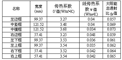 根據Optics CC軟件生成的玻璃系統數據,Therm CN計算框節點傳熱計算及產品設計邊界條件,采用CWWTC進行整窗熱工性能計算。整樘窗熱工性能計算結果如表4所示。