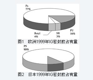 聚氨酯等其它膠種競爭,但以其優(yōu)良的綜合性能和適中的價格仍占居主導(dǎo)地位。從世界市場看,據(jù)日本TORAY株式會社最新統(tǒng)計(jì):1999年世界中空玻璃產(chǎn)量為2億5千7百萬平方米,其中歐洲市場占54%。在歐洲市場,聚硫密封膠占中空玻璃全部用膠量的82%(見圖)。在日本市場,聚硫密封膠占中空玻璃密封膠份額更高達(dá)90%(見圖2)。