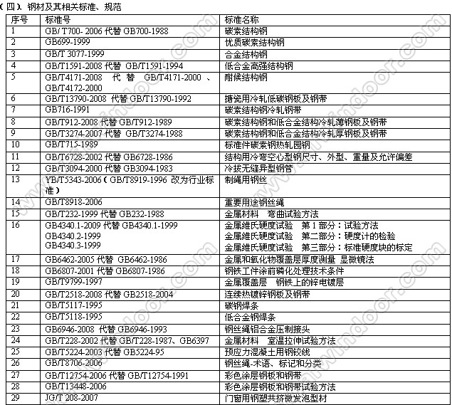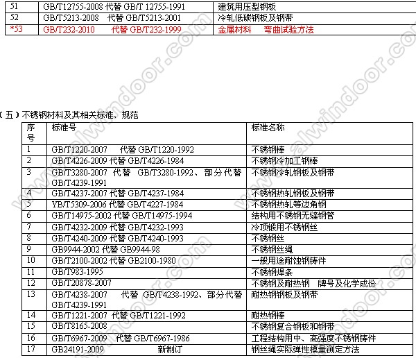 幕墻門窗行業國家標準、技術規范 (2010年9月30日止)