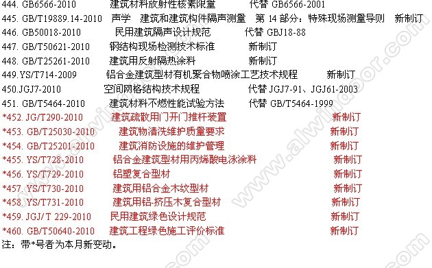 標準規范(發布、修訂) 信息(2010-11-30止)