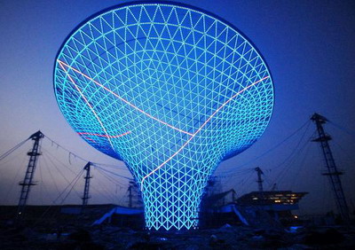 上海世博陽光谷玻璃幕墻 陽光谷玻璃幕墻采用的是北玻研制的8毫米異形超白夾膠玻璃 。歷時152天,北玻共為陽光谷生產了20195片光潔如玉的超白玻璃,總面積接近3萬平方米,成品率達到99.58%。