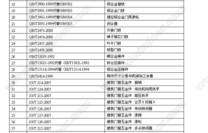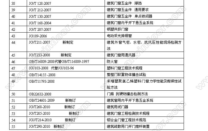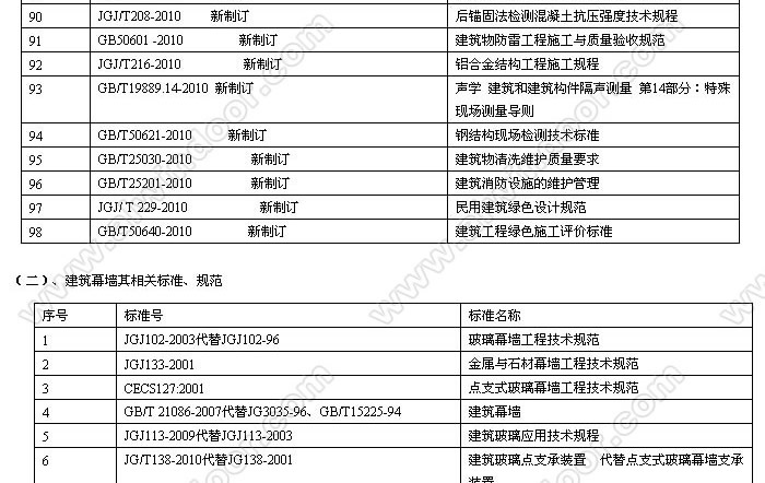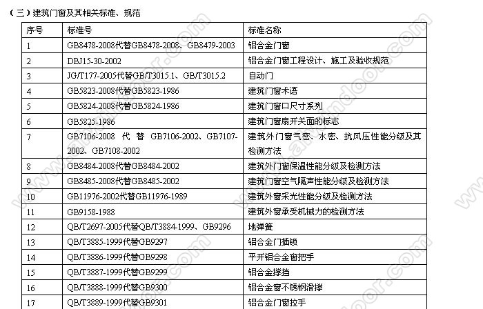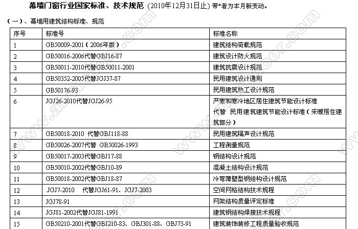 幕墻門(mén)窗行業(yè)國(guó)家標(biāo)準(zhǔn)、技術(shù)規(guī)范 (2010年12月31日止)