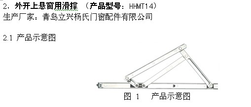 托懸臂與滑軌、滑塊通過鉚釘連接成五連桿結構,其中托懸臂、滑軌采用奧氏體不銹鋼制作,滑塊為不銹鋼工程塑料鑲鑄滑塊,托懸臂、包角加筋處理。當安裝在窗戶上時,推動窗扇,滑塊可在滑軌中靈活往復滑動,從而可開啟或關閉窗扇。