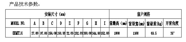 用于60系列PVC型材等平開窗:扇高≤1200mm,扇寬≤750mm,重量≤45kg。