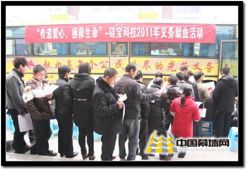 【中國幕墻網】2011年1月24日上午9:30,硅寶商務中心門口排著長長的隊伍,大家都在等待著一年一度無償獻血活動的開始。上午10點,采血工作正式開始,硅寶總經理王有治、副總經理李步春、董事會秘書郭斌等領導率先垂范。大家都踴躍登記、體檢、驗血、采血……工作人員忙得不亦樂乎。一袋、兩袋、三袋……不到一個小時,血液暫存冰箱里就存進去了50多袋血液。