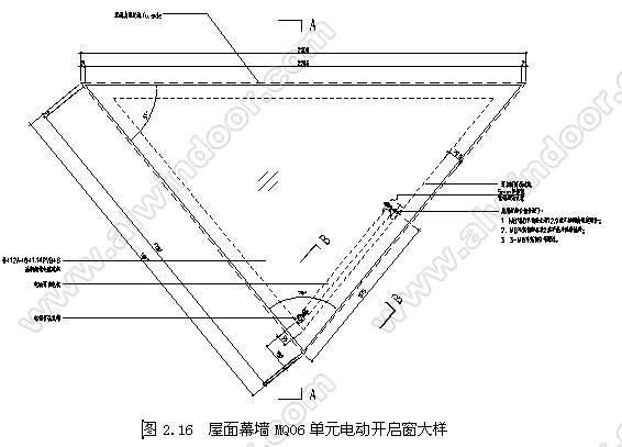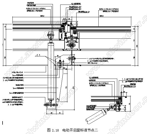 由于選用電動推力較大且開啟電機安裝在開啟窗側邊,所以在開啟窗框架及角部采用注