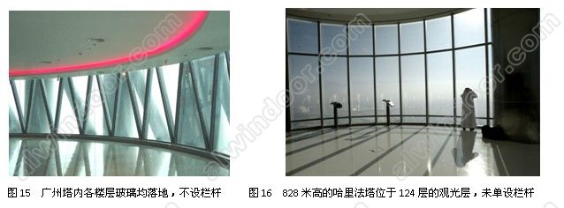 廣州塔高達(dá)600米,玻璃幕墻達(dá)460米,由于采用雙夾膠中空玻璃,更不必設(shè)欄桿了(圖15)。