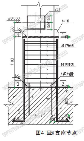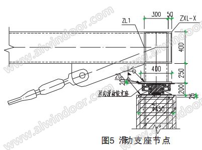 本工程支座主要有兩種連接形式:第一種為與地面和裙房屋頂?shù)?a href='../../zsk/ct.asp?id=7545' target='_blank' style='font-size:1em; border-bottom:1px dotted blue;'>固定連接支座具體詳見圖4 ;第二種為與主塔樓連接的水平滑動(dòng)支座,具體詳見圖5此 支座主要考慮屋面張弦梁結(jié)構(gòu)的預(yù)應(yīng)力自平衡和減少主塔樓在水平地震力作用下對采光頂?shù)挠绊憽?BR>