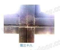 需要購置大型大量的生產及吊裝設備,工廠及現場的場地存放面積空間大。該幕墻結構在安裝時,碰到實墻體、樓板與柱外邊平齊的建筑,由于手無法穿過面板,必須在室內側進行操作,因此內側必須要預留操作空間。加工安裝精度高,主體結構上的連接件和單元組件上的連接構件的配合公差稍大和型材變形等就無法順暢安裝到位,有時就采用野蠻的敲擊方法迫使單元組件就位,即使這樣也還會有部分組件無法完全安裝到位。同時由于構件不連通導致防雷連接麻煩。另,制作安裝偏差會導致各單元之間室內裝飾面縫隙上下、左右、相鄰間隙寬度不一致和凹凸不平整造成的高低差,影響美觀及裝飾效果(見圖三十八)。