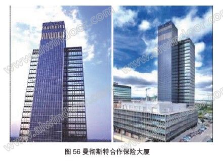 英國曼徹斯特合作保險大廈的光伏幕墻采用了1700塊光伏單元板(詞條“單元板”由行業大百科提供)塊(圖56);而目前采用光伏幕墻最高的建筑是阿聯酋阿布扎比CMA塔樓,76層,385m,在塔樓屋面和朝陽墻面上安裝了光伏組件,年發電量達30萬kWh(圖57)。