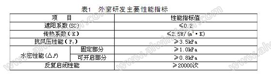 針對夏熱冬暖地區的氣候特點和現有鋁合金窗的實際狀況,以及鋁門窗產品國家標準的要求和國家在建筑節能方面的規定,需要研發一系列具有以高防水性能為主,同時具有良好遮陽防曬、保溫隔熱、抗風壓性能,并能確保高反復啟閉耐久性能的新型鋁合金外平開窗,來適應和滿足我國南方地區用窗的需求,使我國的建筑門窗逐步形成完整體系,實現安全適用、高效節能、舒適環保、經濟合理的目標。其產品主要技術性能指標應達到表1的要求。