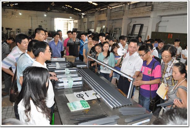 學員正在參觀廣東合和建筑五金制品有限公司大瀝門窗廠