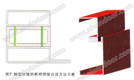 焊接的方法。圖7左是歐洲某企業生產的有隔熱斷橋結構的鋼框