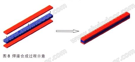 金屬隔熱材料,并不能發現其合成方法。通過深入研究,我們發現,其型材內外層鋼管間除了非金屬隔熱材料外,還有若干個連接柱,而且采用了焊接合成的方法。其大致方法是:先用