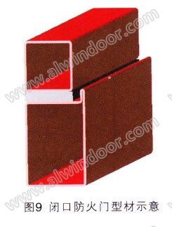 固化需要時間,且填充混凝土后的防火門重量增加很多,給包裝運輸增加了許多困難。安裝時,在現場向防火門門框內填充混凝土,防火門與洞口之間的縫隙有時很小,不僅操作困難,檢驗也很困難,參見圖4右。可以說,實際使用的防火門,其門框內填允的混凝土很難達到性能檢測時的水平。采用隔熱斷橋技術后,型材,如圖9所示。