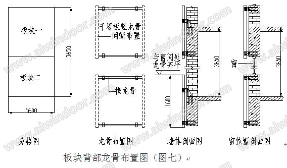 該樓層間高為3.65m , 豎龍骨布置在梁位置,高度為1.6m,龍骨上端與同一標(biāo)高窗間龍骨齊平,保證整體效果統(tǒng)一,通過這種方式設(shè)計(jì),豎龍骨用量大幅下降。