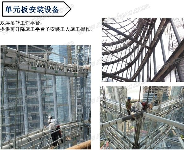 其中單元式玻璃幕墻是近15年來世界最流行的幕墻施工技術(shù),德國等外發(fā)達國家最先使用,我國最先使用的是在上海浦東新區(qū)的部分高層建筑,單元式幕墻把鋁型材、玻璃、配件全部在工廠里預先組裝好,成為幕墻單元板塊,板塊運到工地,在建筑工地將幕墻單元板塊一片片安裝到大樓。