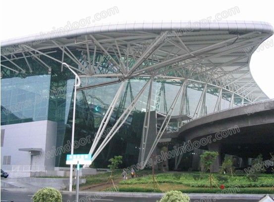 點駁接式玻璃幕墻采用輕金屬框架結(jié)構(gòu)和金屬索機構(gòu),利用金屬駁接爪,把玻璃固定在金屬框架上。點駁接玻璃幕墻結(jié)構(gòu)通透,視覺效果好,近些年主要使用在大型公共建筑中。機場、博物館、展覽館、酒店大堂。點駁接玻璃幕墻的缺點是節(jié)能效果差,不利于現(xiàn)代建筑節(jié)能。點駁接工程的玻璃可以做成曲面,以適應現(xiàn)代建筑的復雜設計構(gòu)造和曲面特殊要求。