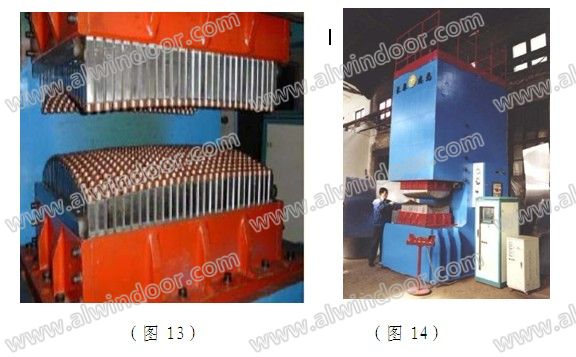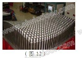 根據機械金屬模成形原理,可以改進出多點沖壓的模具技術,如圖11所示。將上下金屬模變化為若干桿狀金屬矩陣,每個矩陣單體均可以上下調節,這樣可以根據所需要的成形面形狀,調整模具形狀。待調整到需要的模具后,固定好上下模,一般通過液壓驅動,沖壓成形。(參見圖11示意圖)