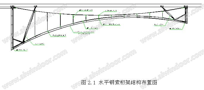 2.3.1、索桁架斜向水平撐桿的設計:按著夠造的要求,每榀水平索桁架都有兩根斜向水平撐桿作為主要承
