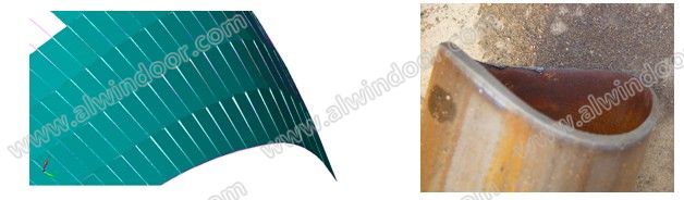 平板玻璃進行折線安裝時玻璃必然會有一個角翹起,為了不讓翹起部分影響視覺效果,在玻璃分片盡可能的采用外形尺寸的變化來保證翹起度的一致,并對每一個玻璃